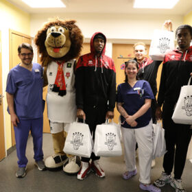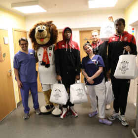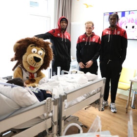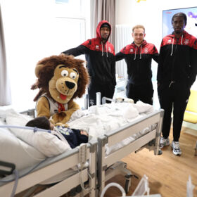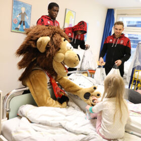 Wie immer hatten die Bayer-Boys liebevoll gepackte Tüten im Gepäck: gefüllt mit Leckereien, Tickets für ein Heimspiel in der Ostermann-Arena und Teampostern. Auf Wunsch des Pflege-Teams wurde auch das große Poster im Spielzimmer unterschrieben, das künftig als gute Erinnerung an den besonderen Besuch hängen bleibt.