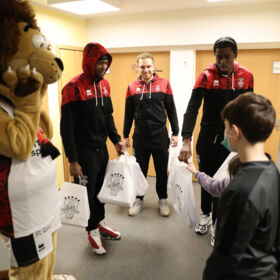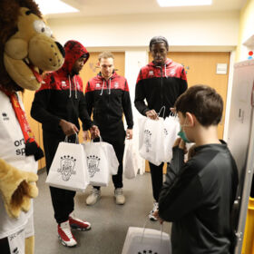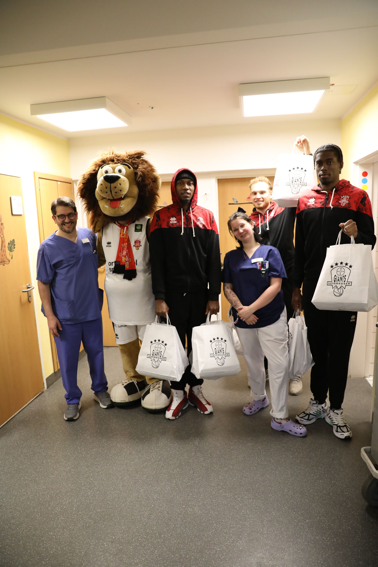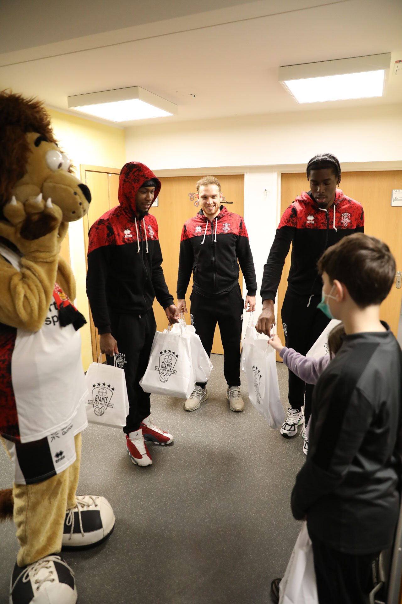 GIANTS-Guard Viktor Ziring war sichtlich gerührt: „Wir freuen uns sehr, wenn wir mit unserem Besuch den Kindern gerade in der Vorweihnachtszeit etwas Freude bereiten können.“ Unterstützt wurde die Aktion erneut großartig von Michaele Raum, die sich ehrenamtlich seit Jahren für die GIANTS engagiert.