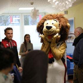 In diesem Jahr führte der Weg der Rheinländer erstmals auch auf die Kinder-Palliativstation „Zeitinsel“. Dort nahmen sich die Koch-Schützlinge besonders viel Zeit für die jungen Patientinnen und Patienten. Vor allem Lionel setzte sich zu den Kindern, hörte zu, schenkte Nähe – kleine Momente, die spürbar gut taten und sowohl Kindern als auch Eltern ein Lächeln ins Gesicht zauberten.