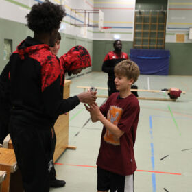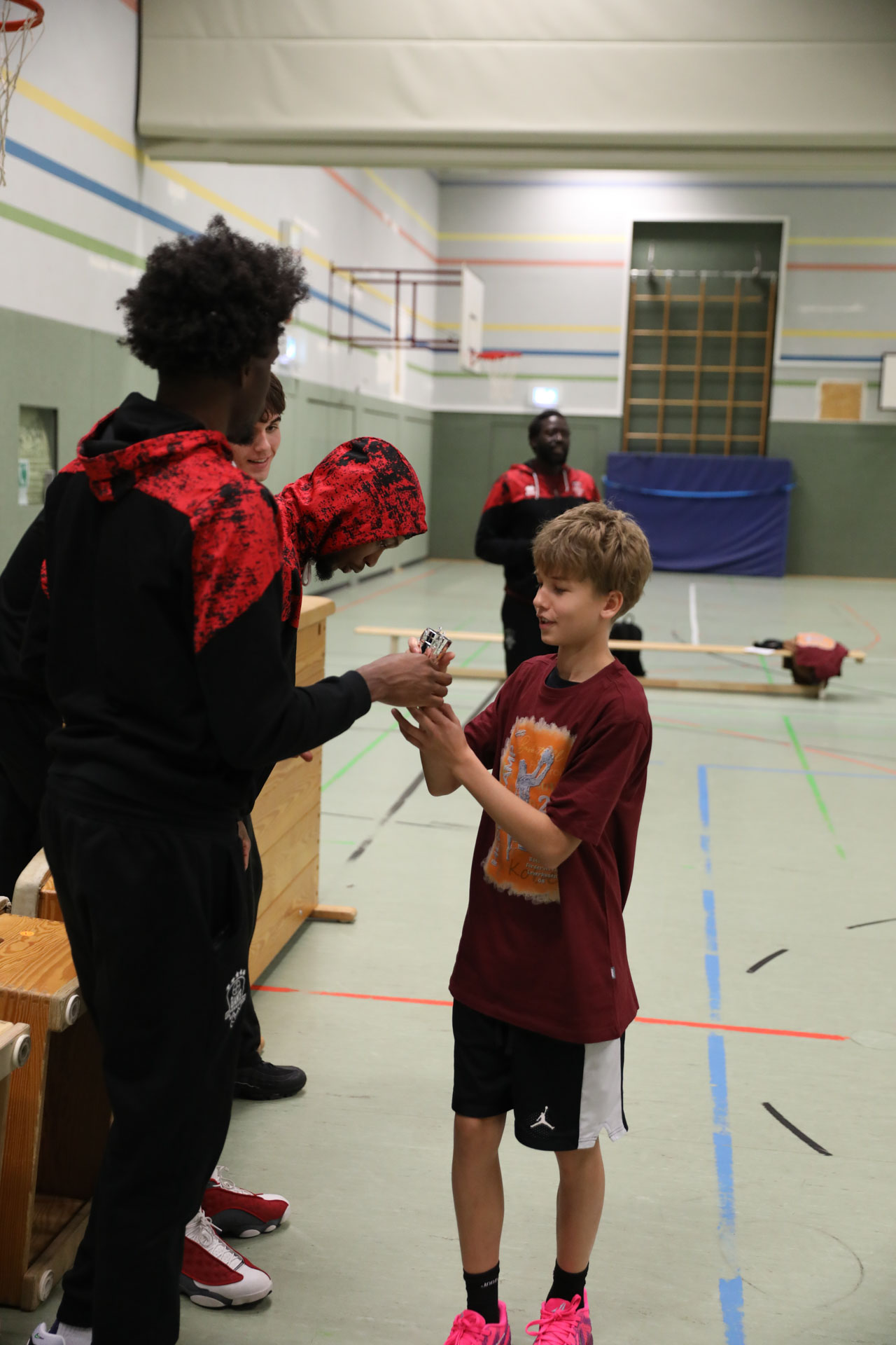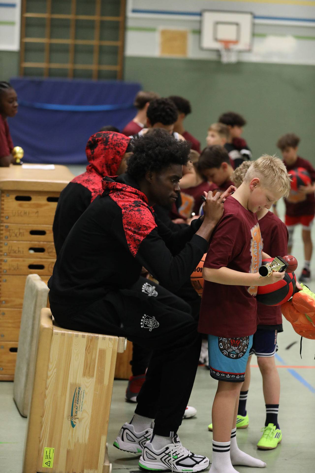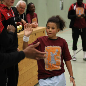 Auch abseits des Starbesuchs war im Camp jede Menge Action geboten. Unter der Leitung von Thomas Röhrich und Makaty Mbaye absolvierten die Kinder ein abwechslungsreiches Trainingsprogramm. Neben den Grundlagen des Basketballs – Werfen, Dribbeln, Passen und Fangen – standen auch Teamwork, Verteidigung und verschiedene Wettbewerbe auf dem Plan. Dabei kam der Spaß nie zu kurz.