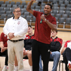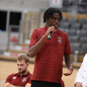 Im sportlichen Teil stellte Headcoach Mike Koch sein Team für die neue Saison vor. Mit John Williams und Ricardo Lynch stoßen nur zwei neue Spieler zu den GIANTS. Beide richteten persönliche Worte an die Gäste und ließen keinen Zweifel dran aufkommen, dass sie alles geben wollen, um mit den GIANTS in eine erfolgreiche Zukunft zu starten. „Aktuell wissen wir noch nicht, wo wir stehen“, meinte Mike Koch. „Unser Ziel ist aber auf jeden Fall der Klassenerhalt.“