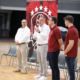 Abteilungsleiter Frank Rothweiler eröffnete den Abend und dankte den Partnern, die den Aufstieg in die BARMER 2. Basketball Bundesliga ProA ermöglicht haben. „Ohne die großartige Unterstützung unserer Wirtschaftspartner wäre der Aufstieg in die ProA nicht denkbar gewesen.“ Persönlich vorgestellt wurden bei der Gelegenheit auch John Happ und Dominic Völl, die die Basketball-Abteilung nach dem krankheitsbedingten Ausfall von Geschäftsführer Henrik Fronda in der Übergangsphase als kommissarischer Geschäftsführer Finanzen (Happ) bzw. in der Organisation (Völl) unterstützen.