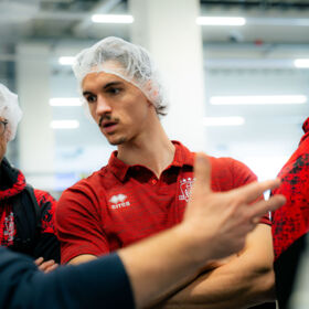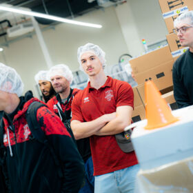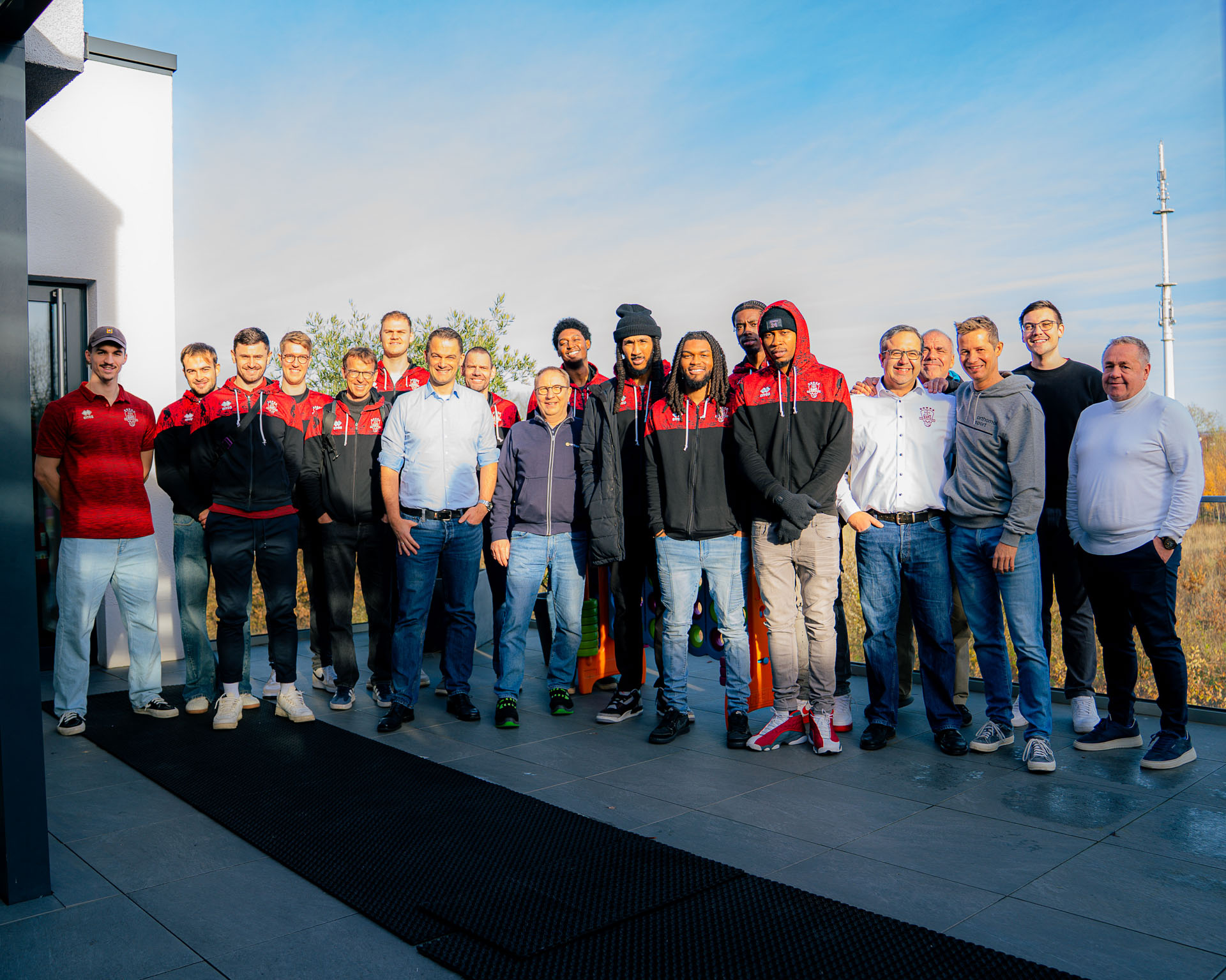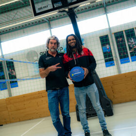 Spannende Einblicke hinter die Kulissen erhielten die GIANTS beim Besuch der Produktion und Firmenzentrale ihres Trikotsponsors Orthomol Sport. Auf Einladung von Orthomol-Firmeninhaber Nils Glagau war der Rekordmeister nach Langenfeld gekommen, um sich vor Ort einen Einblick von den Produktionsstätten zu machen und darüber hinaus viel Wissenswertes rund um das Thema orthomolekulare Ernährungsmedizin mitzunehmen. Neben allen sachlichen Inhalten sollte auch der Spaß nicht zu kurz kommen. Nach einem gemeinsamen Mittagessen ging es in die betriebseigene Beachvolleyball- und Basketball-Halle. Der sportbegeisterte Nils Glagau ließ es sich nicht nehmen, sich mit GIANTS-Guard Kobe Langley ein Freiwurf-Duell zu liefern – mit dem besseren Ende für den Basketball-Profi, aber viel Spaß für alle Beteiligten. Ebenso wie die gesamte Werkstour ein besonderes Erlebnis war.